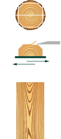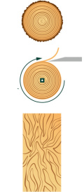 la plana. En el desenrollo la cuchilla se va acercando hacia el centro de la madera en rollo que gira sobre su eje, mientras que en el corte a la plana la cuchilla se